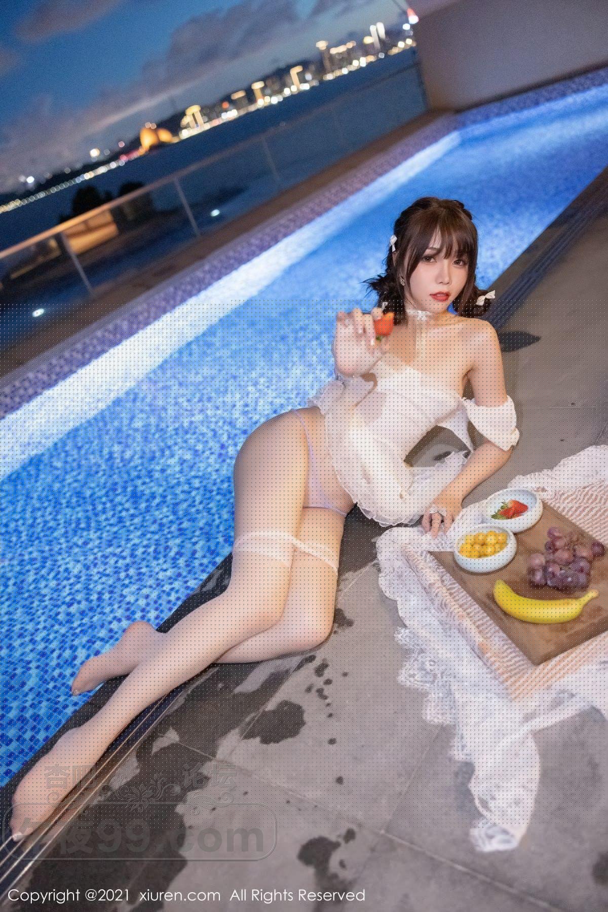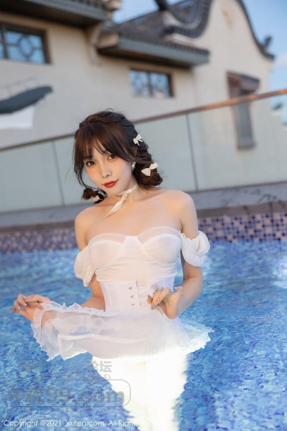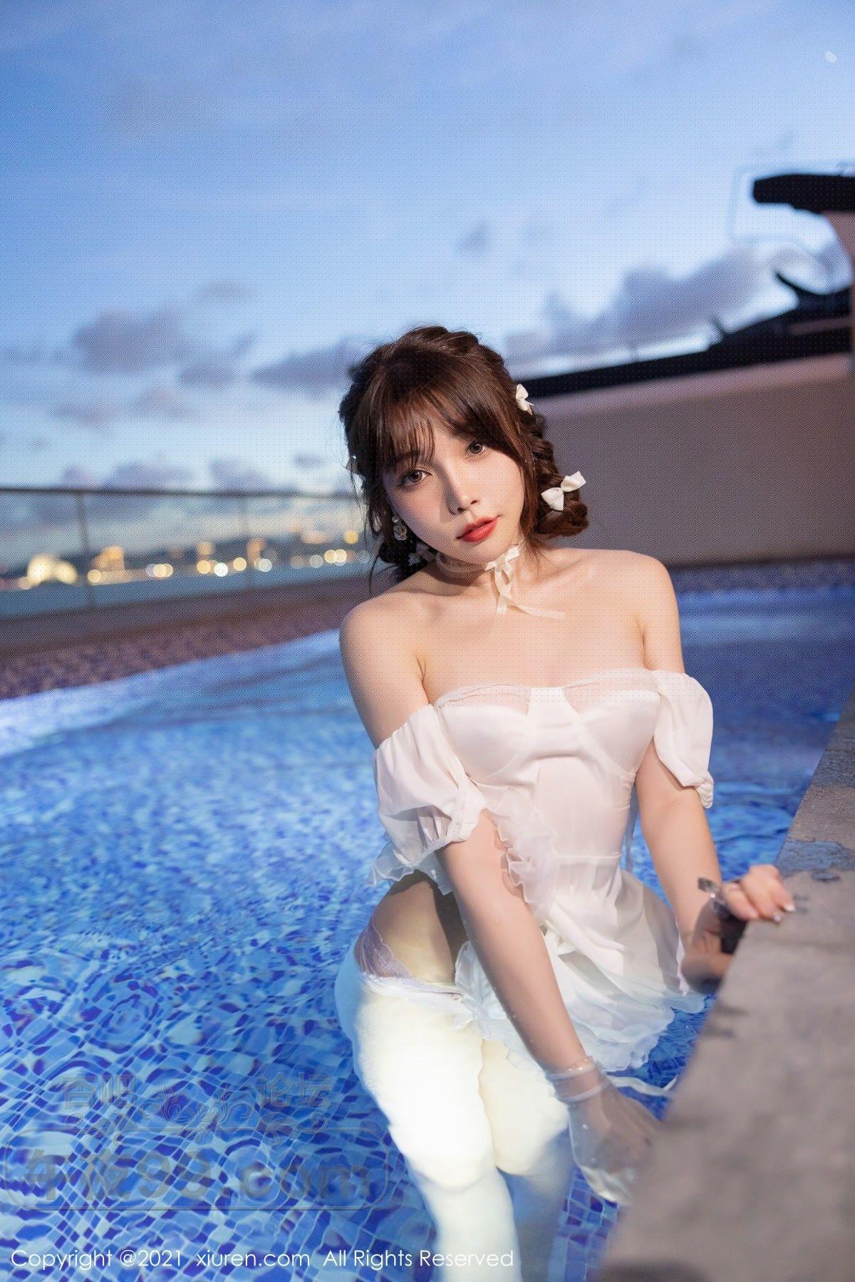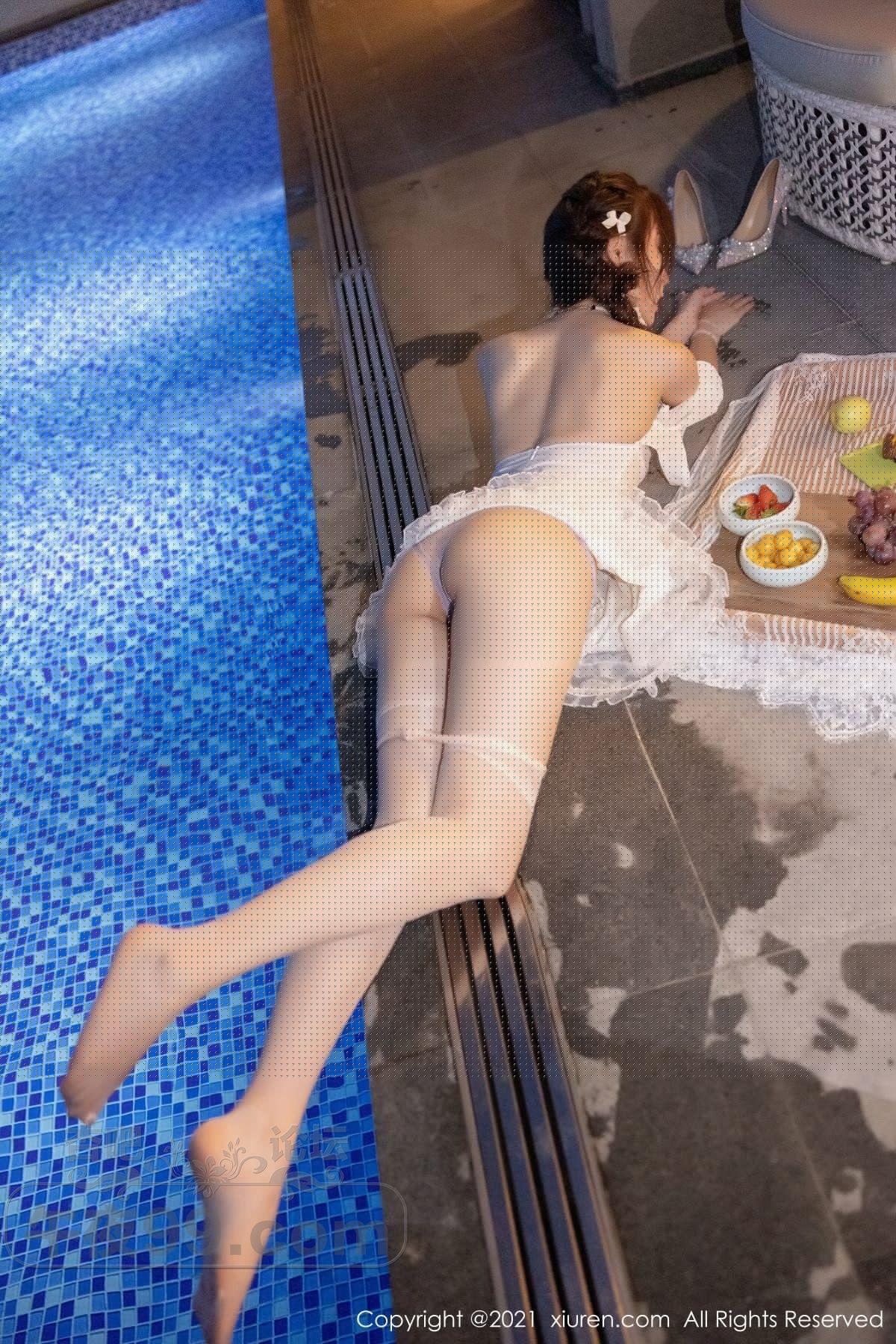 [美腿翘臀] 女神芝芝Booty深圳旅拍泳池边白色薄纱服饰配开档肉丝诱惑写真【50P】 |