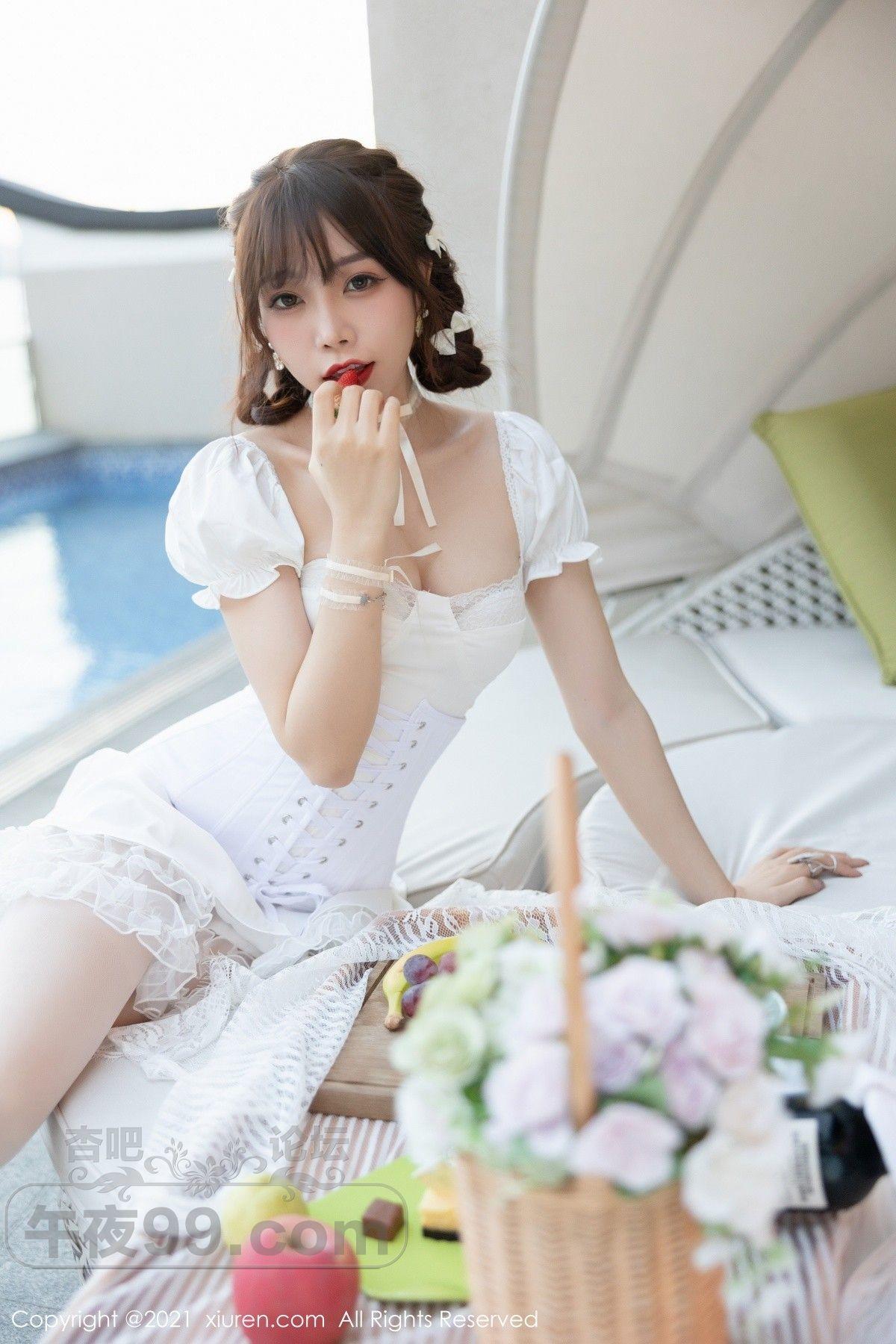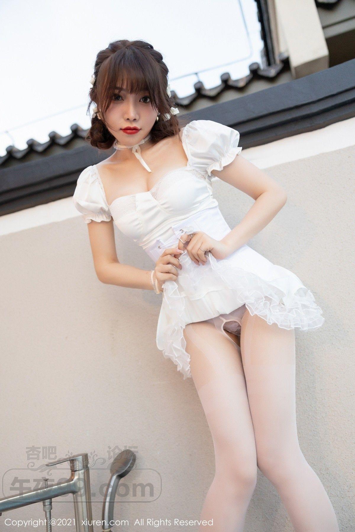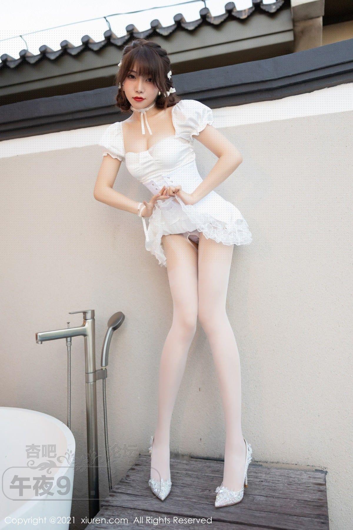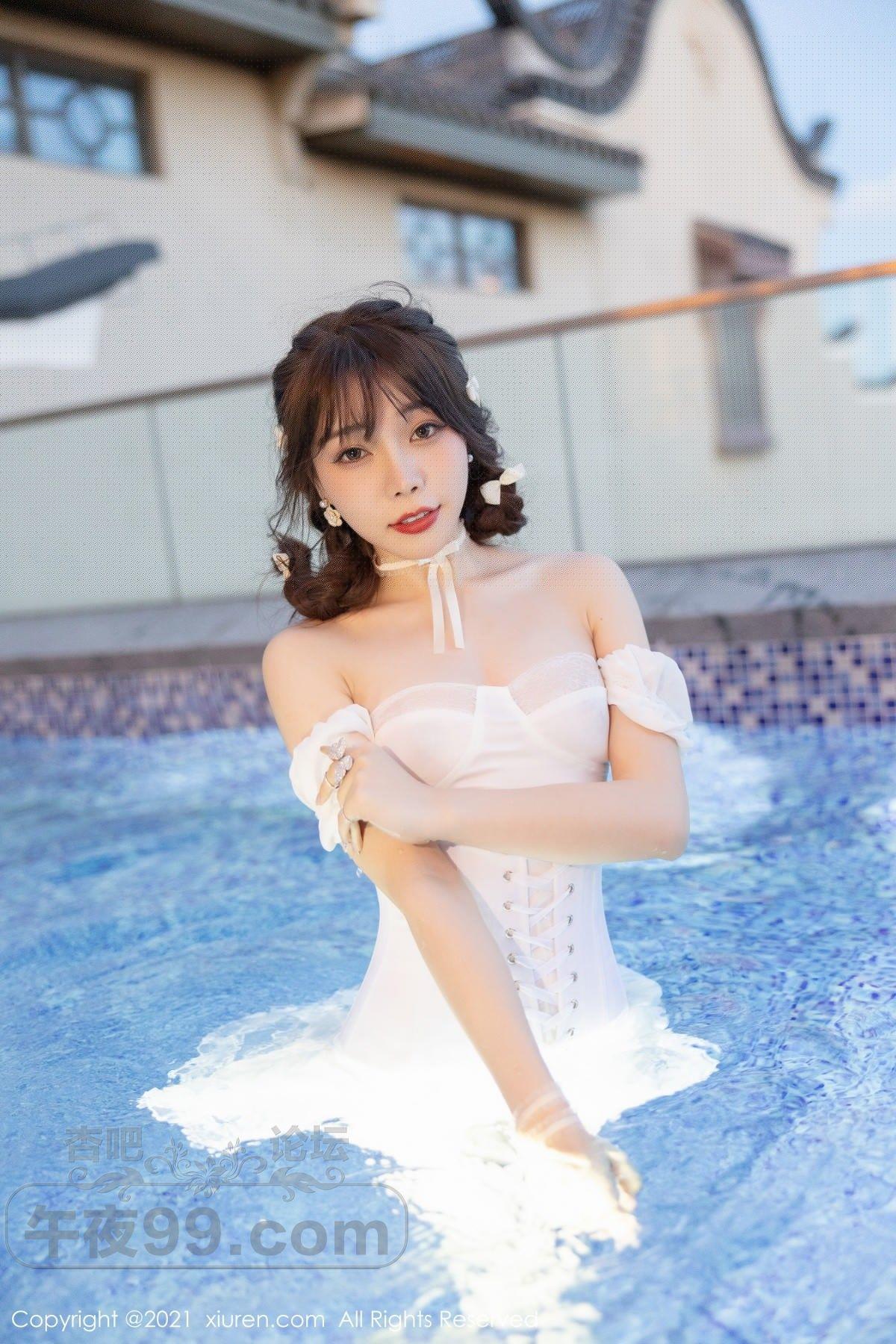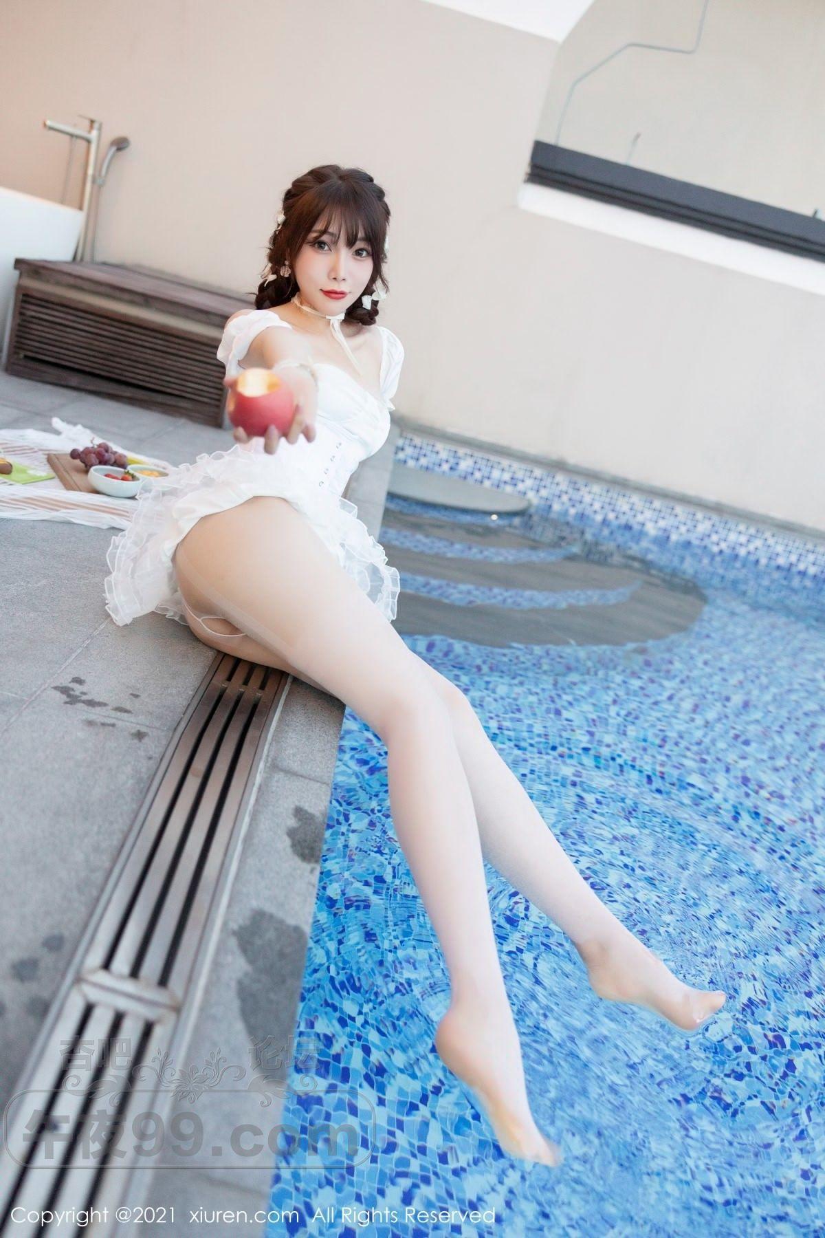 [美腿翘臀] 女神芝芝Booty深圳旅拍泳池边白色薄纱服饰配开档肉丝诱惑写真【50P】 |